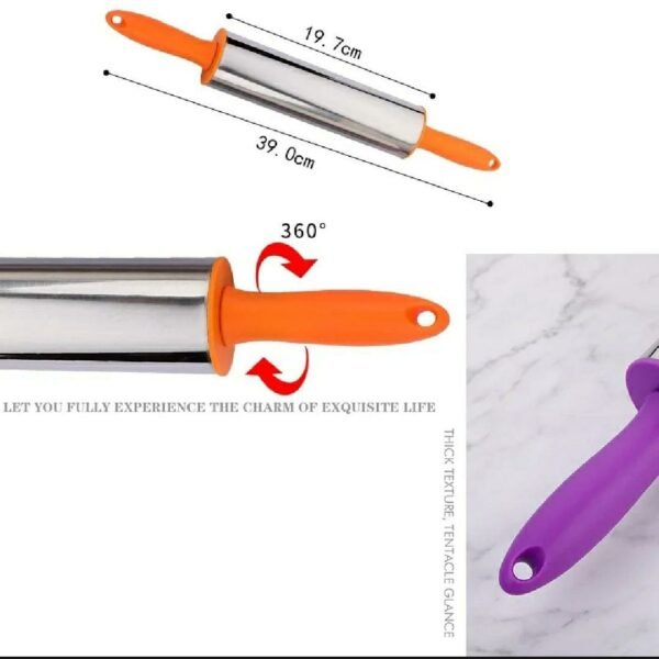 Stainless Steel Dough Bread Rolling pin With Plastic handle