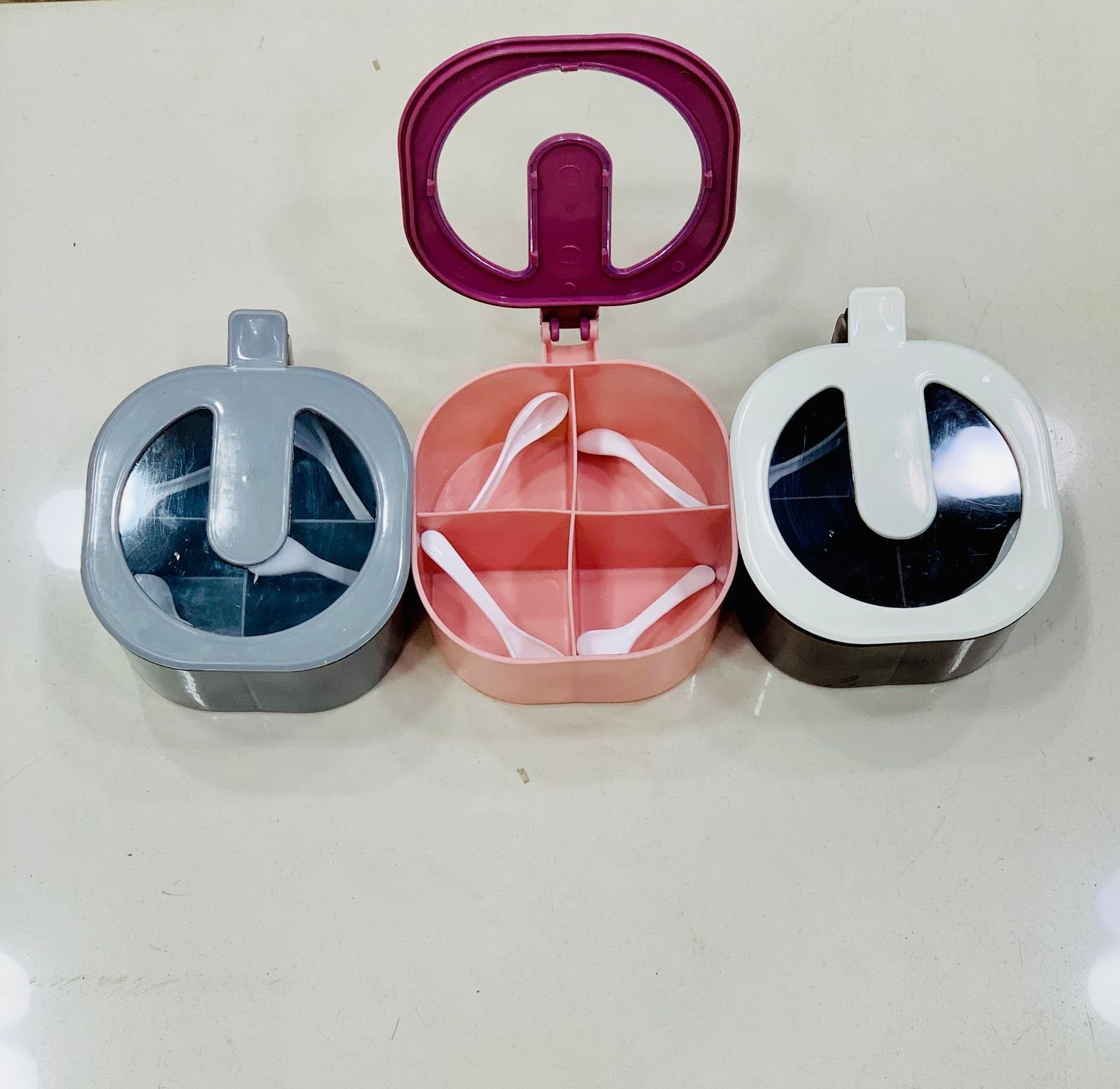 4 In 1 Partition Kitchen Seasoning Spice Box Square Shape Spice Rack Kitchen Storage 4 Compartments Masala Holder