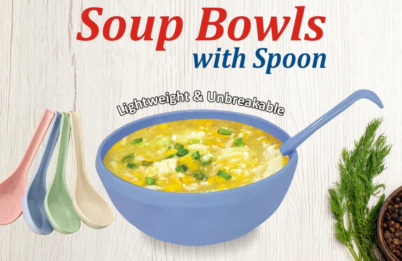 4 Pcs bowls & Spoon Set Soup Bowl with Spoon (Random Colours)