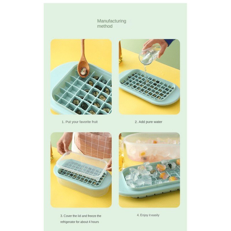 Ice Cube Tray Mold Ice Maker With Lid and Box – 62 Ice Cubes